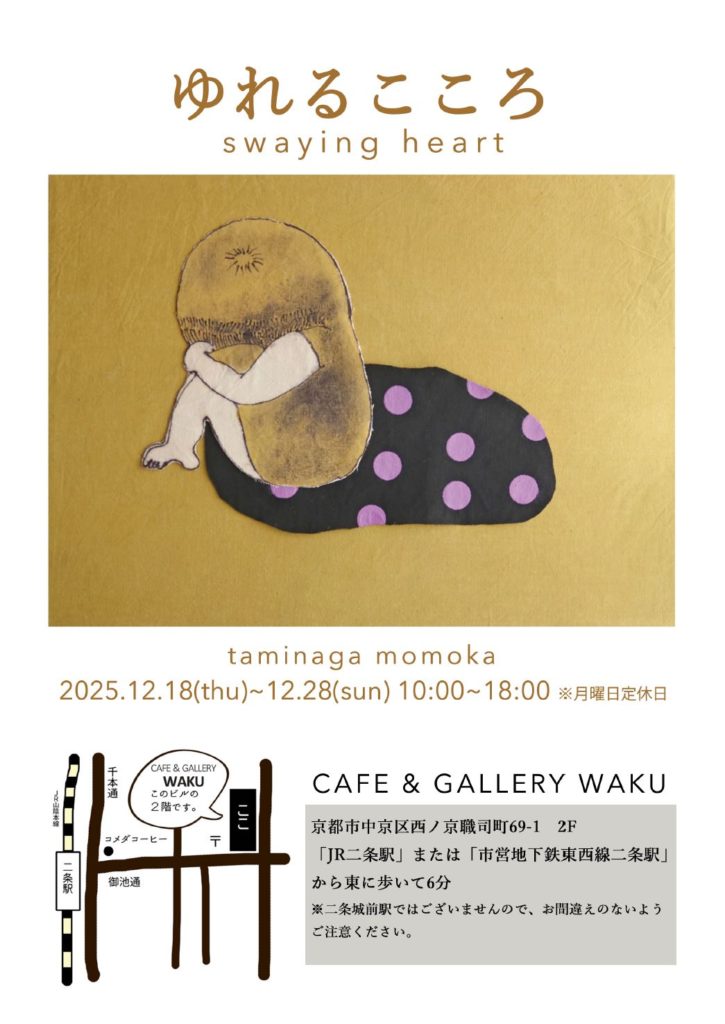 この度、京都二条城近くのカフェスペースにて、展示をすることになりました。